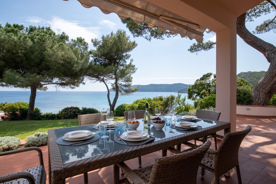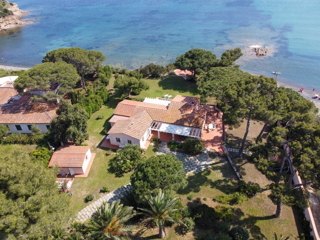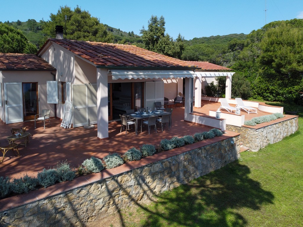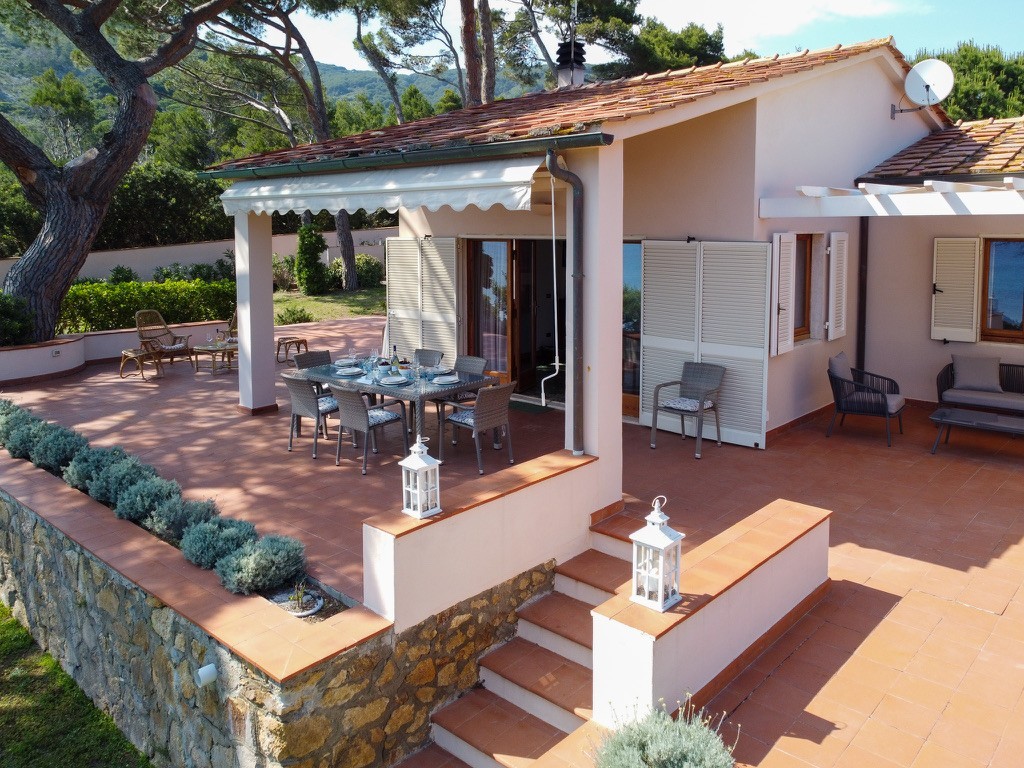 La villa padronale vanta di una vista panoramica unica su tutto il Golfo Stella, dal paese di Capoliveri, all'isola di Montecristo e alla bellissima spiaggia di Norsi ed è circondata da un giardino privato di circa 4000 mq con accesso diretto alla spiaggia tramite una decida di scalini e di una piazzola direttamente sul mare con vista su ambedue le spiagge sottostanti dove potersi rilassare durante tutta la giornata e godere di un tramonto mozzafiato al calare del sole, perfetto per un aperitivo con amici.