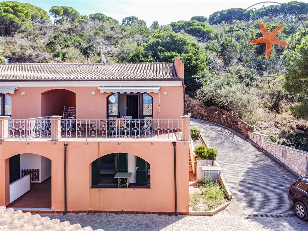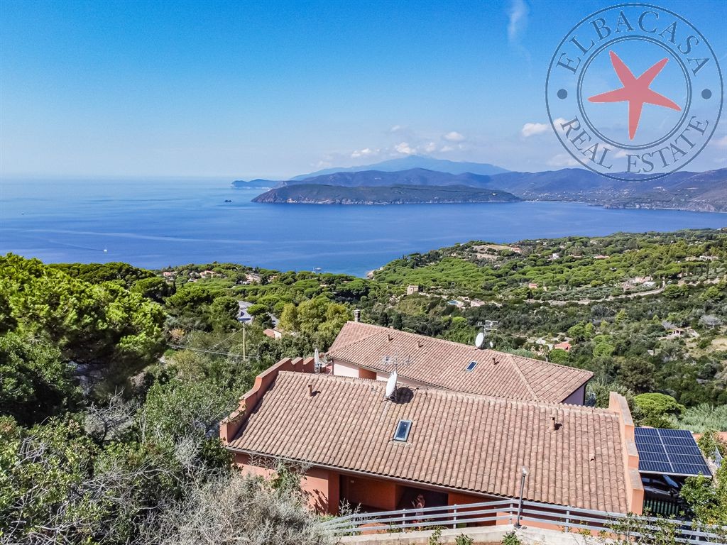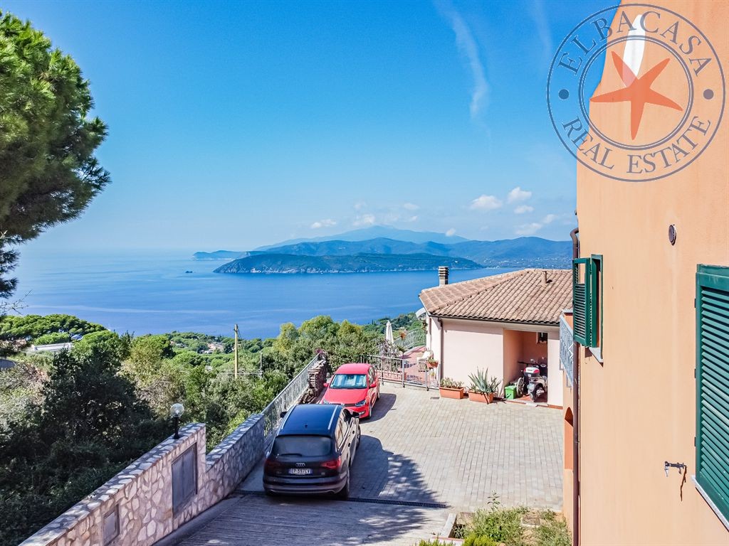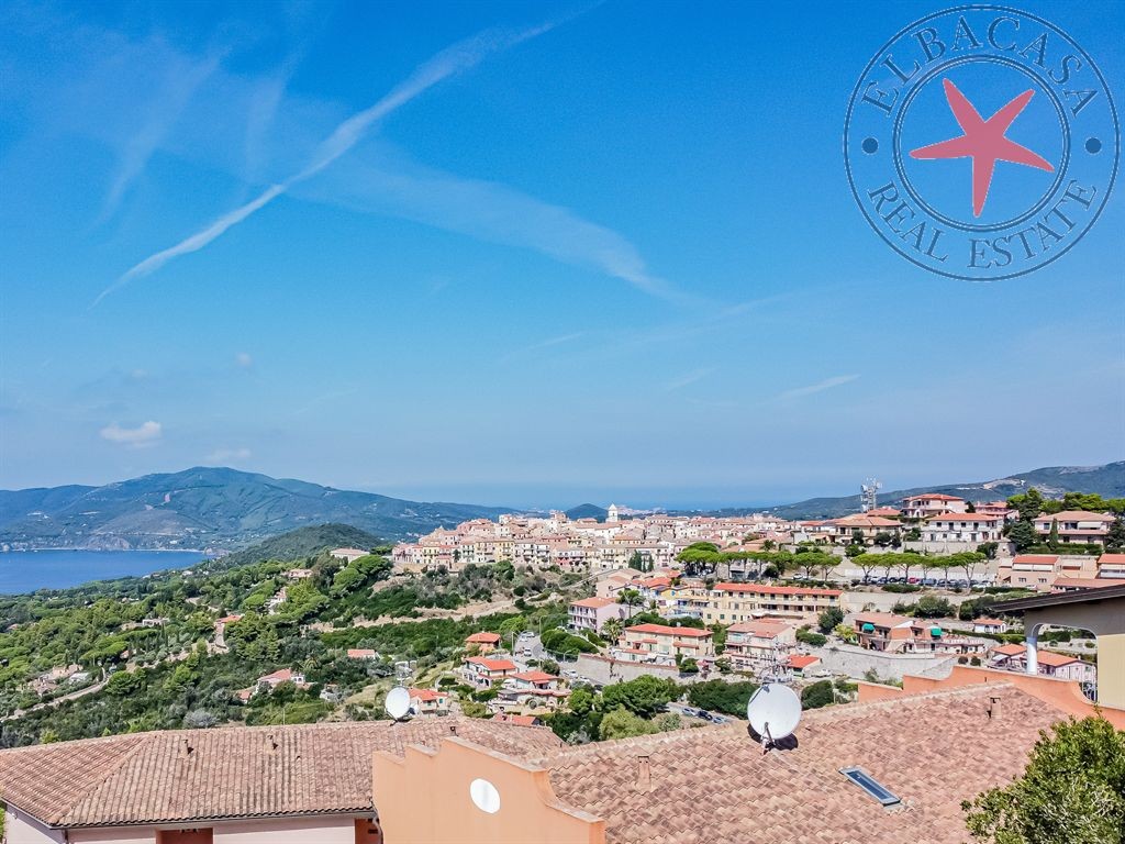 Porzione di villa bifamiliare su due livelli con parcheggio e ampia terrazza panoramica. Si trova sopra il paese di Capoliveri e il centro storico è raggiungibile in pochi minuti a piedi. La zona è tranquilla e residenziale. Al piano terra c'è un bel soggiorno con angolo cottura che si affaccia su una grande terrazza con splendida vista sia sul mare che sul paese di Capoliveri e un bagno. Attraverso una scala interna si raggiunge la zona notte, situata al piano sottostante, e composta da due camere, una stanza multiuso ed un bagno oltre ad un ampio porticato.